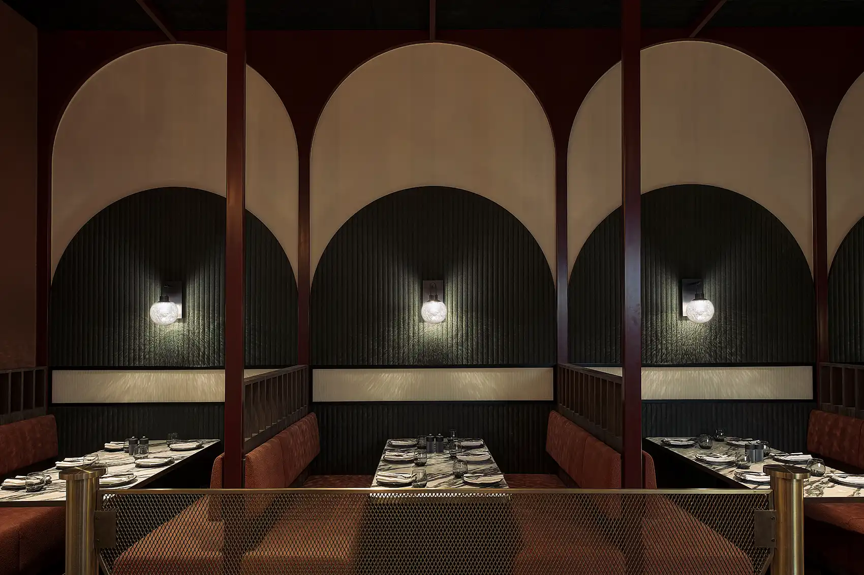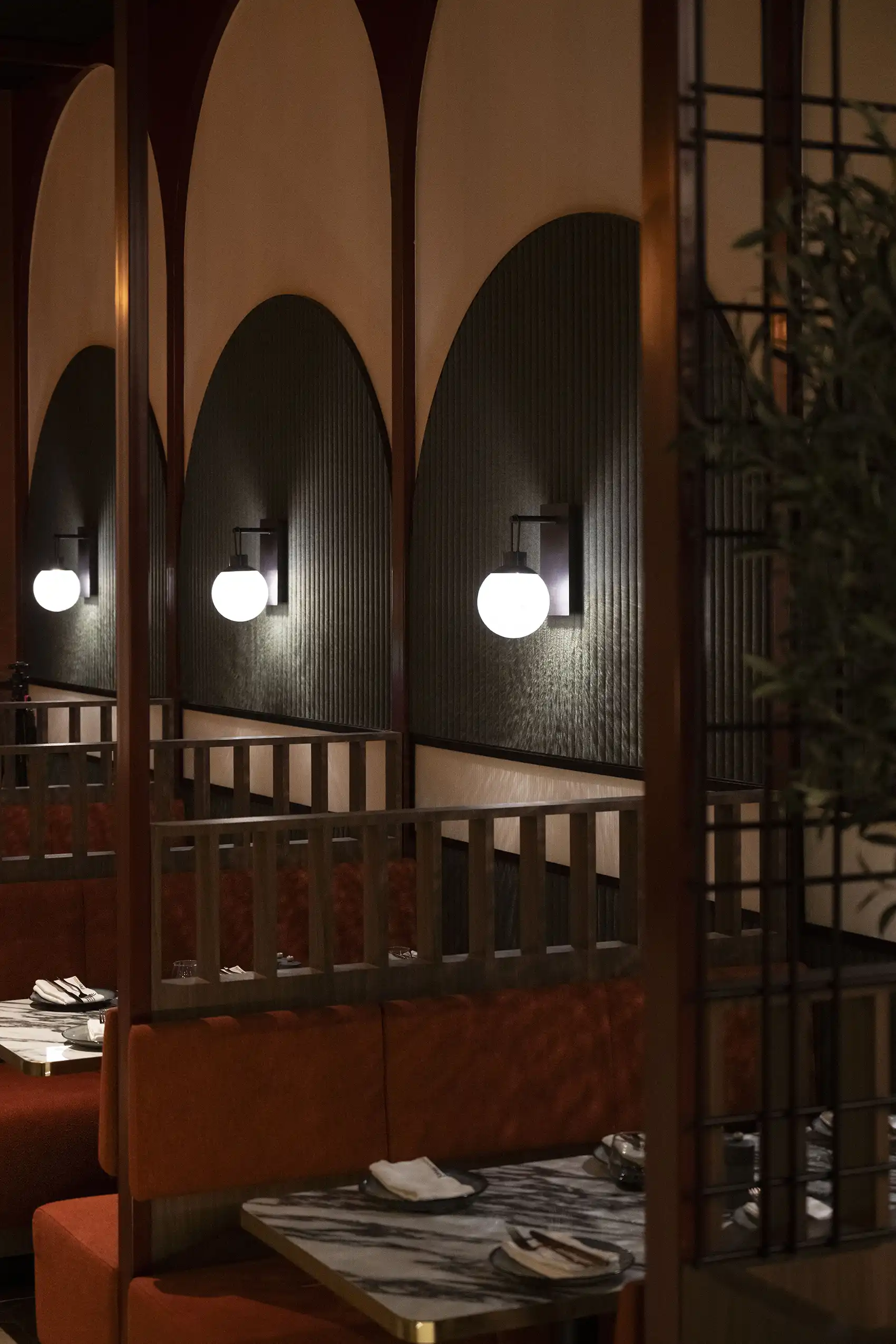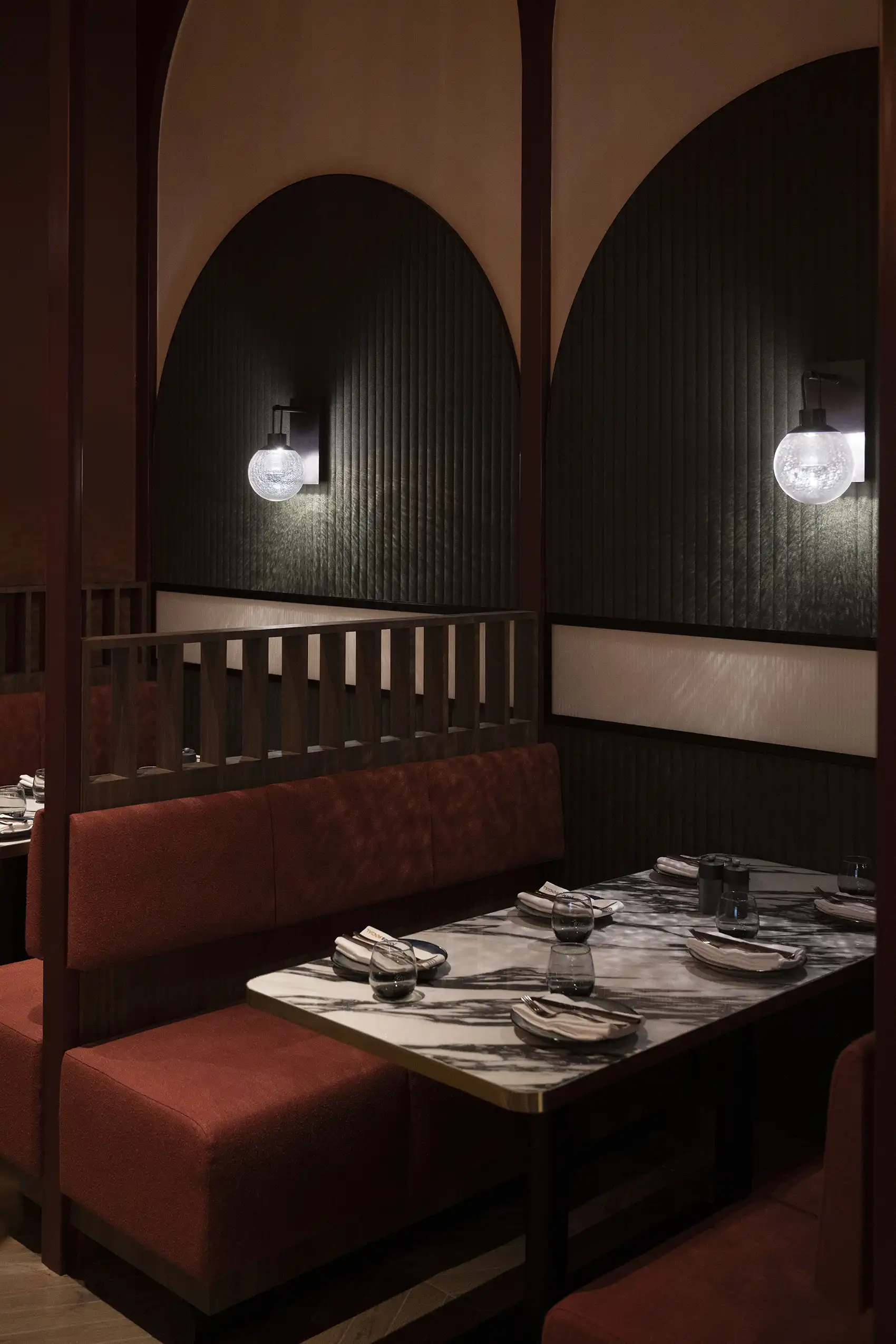 At the centre of it all is a striking bespoke bar, anchoring the venue and defining the flow between its three natural zones: relaxed dining, high-energy central bar, and the late-night social area.